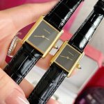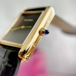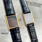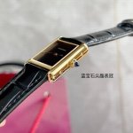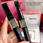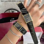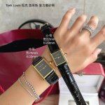 Cartier Tank Louis series. Imported Swiss quartz movement, 316L stainless steel case, black vintage brushed dial, sapphire crystal glass, sapphire spinel crown, Italian knotted calfskin leather. Case sizes: Small: Width 22mm, Length 29mm, Depth 6mm; Medium: Width 25mm, Length 33mm, Depth 6mm.