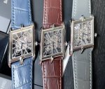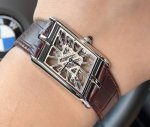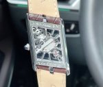 Cartier Tank Skeleton Series Exclusive First Launch, Featuring the Strongest Parameters and Synchronization Case Diameter: 47.15 x 26.2 mm Movement: Swiss Ronda 4S20 Modified Mechanical Movement Case Thickness: 7.82 mm Dial Color: Skeletonized Dial Shape: Quadrilateral SKU: Silver Bezel Silver Stone-set Rose Gold Strap Color: Grey, Blue, Coffee Imported Calfskin Clasp Type: Classic Pin Buckle Case Back: Transparent Case Back Crystal: Sapphire Crystal Hands: Blued Steel Hands Crown: Gem-set Crown