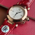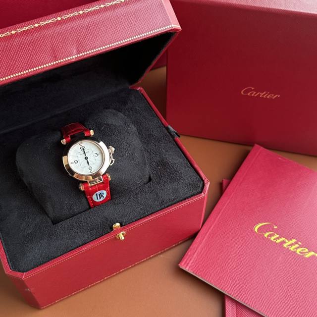 Cartier's new Pasha series is now available, top-quality replica! Dial diameter: 30mm, thickness: 8.22mm, water resistant to 3 bar (approximately 30 meters). Powered by an imported Swiss Ronda quartz movement, ensuring accurate timekeeping. The strap is made of imported American alligator leather and comes with an original buckle. Comfortable to wear and of excellent quality! Among Cartier's many series, the Pasha series stands out with its unique design, "unconventional yet harmonious," cleverly combining square and round elements. The square minute track paired with the rounded dial subtly creates a harmonious aesthetic. The newly inlaid crown, with a short chain and screw-down cover concealing a blue spinel, showcases exquisite craftsmanship. Pearl-engraved dial, diamond-shaped hardened steel blued hands, sapphire crystal. Finally, this watch boasts first-class workmanship, components, materials, and details.