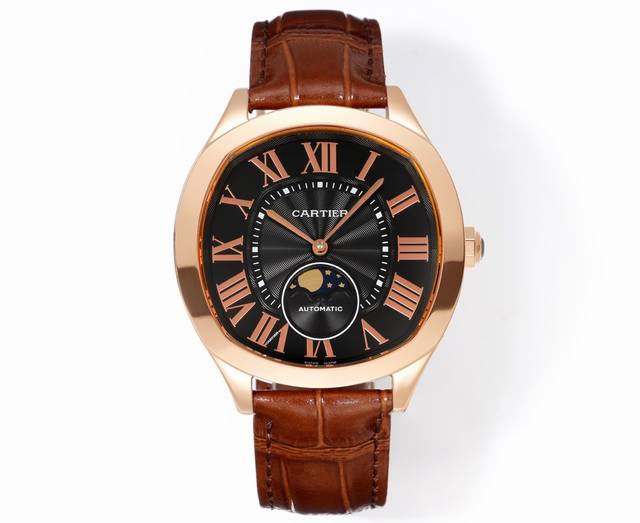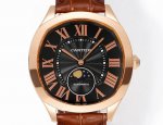 Factory Cartier Drive De Cartier Af9 watch. With its elegant and solemn cushion-shaped design and clean, sophisticated lines, it exudes a masculine and unyielding charm. The watch case measures 40mm x 41mm x 12.5mm. The unique cushion-shaped case is exquisitely crafted, and the sapphire crystal features clear, full curves. Meticulous attention to detail ensures a near-perfect replica for watch enthusiasts. It utilizes the original Cal.1904-Ps Mc movement, with rhodium plating on the rotor and bridges, and a perfectly aligned balance wheel, achieving a near-perfect simulation. Key details include: 1. Exclusive market purchase of original parts for mold making; 2. Full and three-dimensional blued hands; 3. Delicate and harmonious classic buttonhole pattern on the dial; 4. Overlaid printing of 12 Roman numerals for a smooth and neat effect. A refined and understated timepiece with exquisite craftsmanship, adding a unique touch to your wrist.