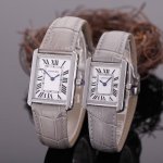 ) Brand: Cartier Type: 2-hand Tank series couple's watch Strap: Top-grade imported cowhide strap Movement: Top-grade imported quartz movement Crystal: Top-grade imported stainless steel crystal with anti-reflective coating Size: Medium 27mm, Small 24mm