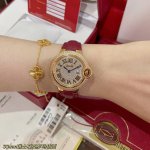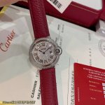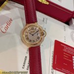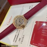 Real photos of Cartier Ballon Bleu Roman numeral dial, 33mm, available now, same as in boutiques. Double row of diamonds, Swiss quartz movement, excellent size, exquisite and compact, hand-set diamonds, gold Roman numeral dial, maroon pebbled leather strap. Limited stock available~ Please look for exclusive high quality and we recommend you buy now! DDD