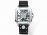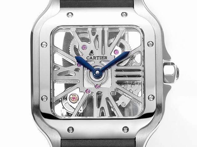 Thb Santos Skeletonized Strap Series First Release DDD Specifications are synchronized with the genuine product DDD Case Diameter: 39.8 mm DDD Movement: Modified Swiss Ronda 4S20 mechanical movement DDD Case Thickness: 9.08 mm DDD Dial Color: Skeletonized DDD Dial Shape: Square DDD SKU: Black, Silver, Silver Bezel, Silver Rose Bezel, Silver Gold Bezel DDD Strap: Imported fluoroelastomer quick-release links DDD Clasp: Cartier's latest folding clasp DDD Case Back: Transparent case back DDD Crystal: Sapphire crystal DDD Hands: Blued steel hands, black version uses imported green luminous material DDD Crown: Gem-set crown DDD