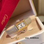 White case with gold, 30 diamonds. Cartier's 2025 classic reimagined, the iconic Tank watch is scaled down to a new Mini Tank quartz watch series. The slim case and exquisite proportions perfectly fit the wrist, showcasing feminine elegance. The gold case is paired with sapphire crystal glass, and the vintage-style frosted cream dial is clear and easy to read, showcasing Cartier's minimalist craftsmanship. The Mini Tank is more than just a watch; it's a style, an attitude. Fashion is cyclical; this isn't just a "ladies' watch," but a "mini tank for everyone." Case dimensions: Mini: Width 16.5mm, Length 24mm, Thickness 6.2mm.