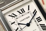 The dial features classic Roman numerals, a white dial with blued steel hands, and a square inner circle of indices in the center. Combining premium taste with avant-garde design, the Tank watch maintains a timeless modernity, always at the forefront of its time and is considered one of the most important designs in watch history.