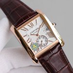 The final upgraded version in platinum, the highest-end on the market, the thinnest and best-feeling, featuring exclusive molds, a perfect reproduction of the Cartier Tank series, and the ultimate version of the British Tank series worn by Andy Lau. This square men's watch features the original 1904Mc automatic mechanical movement, case diameter: 34mm x 44mm. It uses original roasted steel blue hands for a uniform, permanent color. Each movement's balance wheel has a unique engraving with a unique number. Double-sided sapphire crystal glass, water-resistant to 250 meters, and imported Italian cowhide for continuous improvement. Be sure to look for this top-of-the-line version's unique roasted steel blue hands and the engraved number under the independent balance wheel.