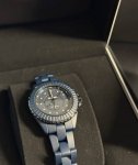 Real shot of Cartier Ballon Bleu watch, double row of diamonds, glossy black all