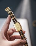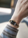 Chanel's sugar cube watch is so perfect for her! The black and gold color scheme is petite yet elegant, and it makes her skin look even fairer! The woven bracelet also accentuates her slender wrist! She said she loves it, and I'm so happy too~ DDD