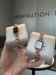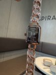 ) Chanel Petite Brown Quartz Watch for Ladies, size 2126mm. Features an imported quartz movement, a square-faced, polygonal, large-beveled anti-reflective glass crystal with diamond-cut finish for flawless clarity, and a comfortable stainless steel bracelet. A timepiece that exudes vintage elegance and is a favorite among vintage watch enthusiasts. The dial features no second hand, no numerals, and no hour markers, allowing you to tell time at your own pace, making it unique and adding a touch of avant-garde style to various looks. (