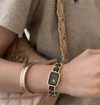 My most frequently used Chanel black and gold sugar cube watch DDD It really matches my outfits DDD If you like simple outfits with accessories, don't miss it DDD Accessories are a very important highlight DDD