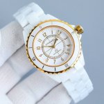 Special Double Eleven Recommendation: Chanel J12's latest white ceramic 18K gold model is finally available! Case: White and black high-precision ceramic and 18K gold yellow case. Bezel: 18K gold yellow and white sapphire crystal unidirectional rotating bezel with gold diamond bezel. Dial: White and black lacquered dial with gold-plated hour markers and beveled edges. Crown: Cabochon white high-precision ceramic screw-down 18K gold yellow crown. Strap: White and black high-precision ceramic strap. Clasp: Triple folding stainless steel clasp. Movement: Chanel Caliber 12.1 automatic mechanical movement.