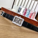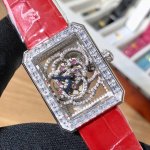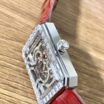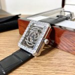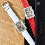The ultimate luxury version! The only watch in the industry with a rectangular crown movement, designed as a transparent, skeletonized 3D camellia. The movement itself is further embellished with micro-setting jewelry using 128 eight-heart, eight-arrow zirconia stones. A 3D luxury jewelry camellia transparent movement watch! The crown features a large zircon in the center, surrounded by a ring of smaller zircons. Features: Swiss movement, transparent sapphire crystal on both top and bottom. Available with colored alligator leather or Italian calfskin straps with spring bars! Chanel Premi