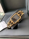 Chanel Premiere watch! 1987, inspired by the vintage sugar cube silhouette of Paris' Place Vend?me! Case diameter 26.1 x 20mm, stainless steel case, lacquered dial, mineral crystal, crown inlaid with cabochon -cut onyx, stainless steel and leather. Vintage sugar cube women's watch!