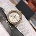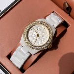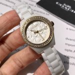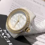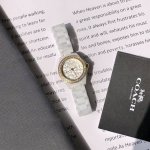 Coach Women's Quartz Watch! 28mm case diameter, smooth and comfortable ceramic case, paired with a simple, irregularly patterned dial. A sophisticated and minimalist style, a clever blend of modern and classic elements. The ceramic strap complements the hour markers on the case, a fresh and bright design that's versatile for everyday wear. Most importantly, the entire outer bezel of the dial is set with crystals and diamonds, sparkling brilliantly in sunlight. The pure white ceramic strap is elegant and versatile. It's truly beautiful; not just a watch for telling time, but a stunning accessory for your wrist! Comes with full boutique packaging!
