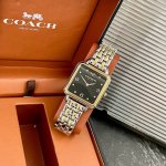 Latest model, original Coach women's watch, small square watch. The design gives the Cass timepiece a modern and unique style. It features a smooth chain link, a lacquered dial, and is adorned with numerals and sparkling crystal markers. Elegant black dial
