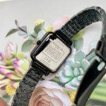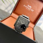 Newest arrival! Original Coach women's small square watch, the design gives the Cass timepiece a modern and unique style. Features a smooth chain link, a lacquered dial, and numerals and sparkling crystal markers. Elegant black
