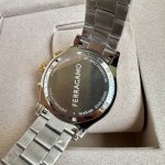 New Ferragamo men's watch, 42mm case diameter. Anti-reflective sapphire crystal with blue coating, scratch-resistant and wear-resistant, genuine Ronda quartz movement, stable timekeeping, ultra-thin CNC stainless steel with excellent polishing, stainless steel bracelet, suitable for all seasons, Ferragamo's iconic logo on the dial, highly recognizable. Genuine Aj, six-hand steel bracelet, complete packaging.