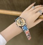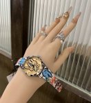 Gucci's Bunny is Here! The Gucci G-Timeless series W-bowl watch, released to celebrate the Year of the Rabbit, features a vibrant new design. The dial is 38mm in diameter, with a stainless steel case, a glass adorned with a Gucci bunny print, and leather trim featuring Gucci bunny graffiti patterns. These diverse designs, presented in a colorful spray-painted style, bring a unique vitality to the G-Timeless series. So cute, you have to bring it home!