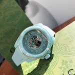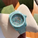 Gucci's newest Gucci Dive series watch has been unveiled, inspired by diving watches. Elements such as bees and stars adorn the transparent dial, evoking authentic memories. Thanks to sustainable technology, this watch features a breakthrough in materials, crafted from recyclable stainless steel and new bio-based plastics, integrating environmental protection into every moment. It has a sapphire crystal, a 40mm diameter, and a unisex design. It comes with a genuine Swiss-made Sw200 mechanical movement. Perfect for gifting! Comes with full packaging.