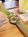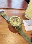 New Gucci Dive watch, inspired by diving watches, with elements like bees and stars adorning the transparent dial, evoking authentic memories. Thanks to sustainable manufacturing processes, this watch features a breakthrough in materials, crafted from recyclable stainless steel and new bio-based plastics, integrating environmental protection into every moment. It has a sapphire crystal, a 40mm diameter, and a unisex design. It comes with a Citizen 8215 mechanical movement, making it a great gift!