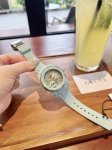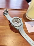 New Gucci Dive watch, inspired by diving watches, with elements like bees and stars adorning the transparent dial, evoking authentic memories. Thanks to sustainable manufacturing processes, this watch features a breakthrough in materials, crafted from recyclable stainless steel and new bio-based plastics, integrating environmental protection into every moment. It has a sapphire crystal, a 40mm diameter, and a unisex design. It comes with a Citizen 8215 mechanical movement, making it a great gift!