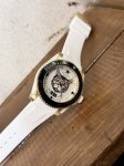 Upgraded original quality Gucci new unisex dive watch, 40mm case diameter, dial featuring the brand's iconic "cat" motif and luminous display. Made of stainless steel with a satin-brushed finish, paired with a rubber strap matching the dial color. The unidirectional rotating bezel is decorated with luminous hour markers for dive countdown. Swiss Eta quartz movement, water resistant to 50 meters. In stock.