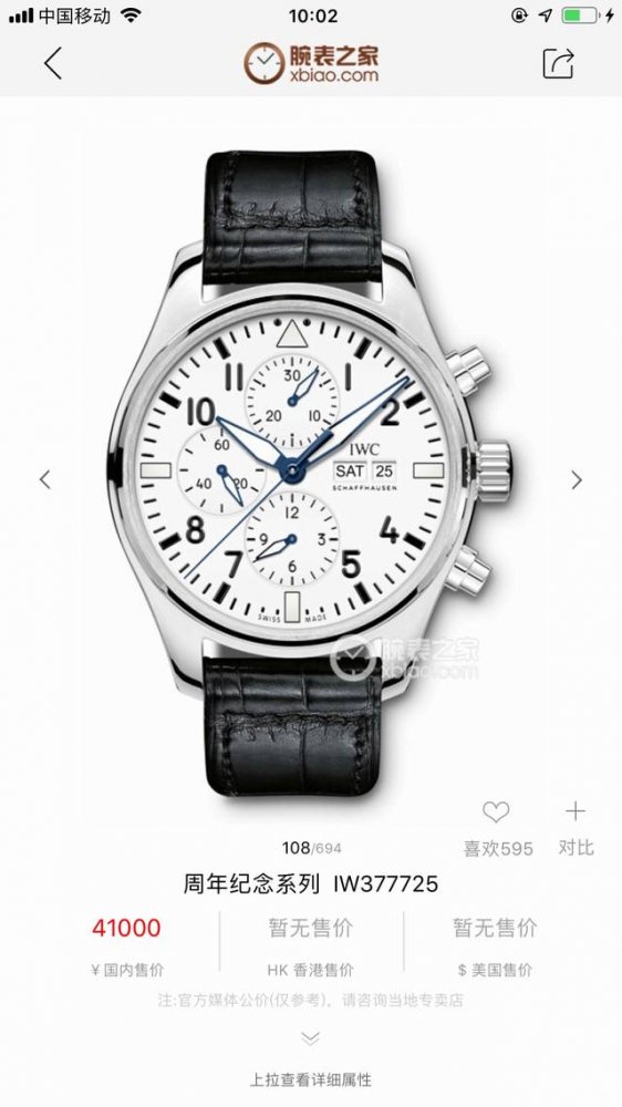 150th Anniversary Edition Alligator Leather Strap, Model Iw377725, New Release! High-Quality! Export Order! Brand New! Only missing the dealer's stamp makes it authentic! IWC Pilot's Chronograph, possessing the typical qualities of a high-performance watch: precision, functionality, and reliability. Mechanical six-hand chronograph, this pilot's watch is water-resistant to 6 bar and features a leather strap. It uses the original Swiss Eta-7750 automatic mechanical movement (IWC's own 79320), anti-reflective sapphire crystal, and a 43mm case diameter. Timeless design, extremely rare even in boutiques! The warranty card and hangtag have the model number and watch identification number. I'm so happy to have you guys with such a perfect watch! Unbeatable value, exclusive source!! DDD