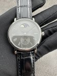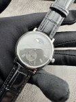 's 316L stainless steel case, with a very smooth polish. The small seconds subdial is located at 6 o'clock with a stop-seconds function and solid Roman numeral markers. The moon phase complication is positioned exactly as on the original. We can see that the leaf-shaped hands indicate the hours and minutes respectively, and the watch features a double-sided anti-reflective domed sapphire crystal!