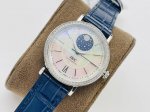 IWC Portofino Moon Phase Automatic Ladies' Watch, 37mm! Details: DDD 1: Exclusively custom-made IWC Cal.35800 true moon phase movement, completing one full cycle per month. A side pusher at the 2 o'clock position allows for quick adjustment of the moon phase, achieving the same function as the original! DDD 2: The 316L stainless steel case is set with flawless diamonds, showcasing the prestigious status of the moon phase model. The simple markers, 12 flawless small diamonds, and hands maintain Portofino's consistent elegance and sophistication . DDD 3: With the custom-made movement, the size is identical to the original at 37mm, with a thickness of only 10.8mm. It features a double-domed sapphire crystal with electric blue aluminosity! The DDD 4316L watch strap is crafted from imported calfskin leather and finished with top-notch hand-stitching techniques. It's available in five colors: dark black, reddish-brown, national red, turquoise, and deep blue