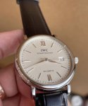 IWC Portofino series automatic mechanical men's watch, commonly known as the "Red 60," extra-large 40mm dial with white dial, leaf-shaped stainless steel hands and markers, date display, sapphire crystal, powered by IWC Cal. 35111 movement. The case back and seven-digit movement stamp (ID number 5018792) are clearly visible. Box and certificate complete, near-new condition, unused. Complete set. Retail price: 52,650. Available now for a discounted price of 19,350. (DDD)