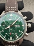 Iws2025 New Product Highly Recommended: IWC Pilot's Watch Series Iw377701. The watch features high-tech gold plating, mature craftsmanship, clear and three-dimensional lines, and harmonious color matching, making it very versatile. Compared to previous pilot watches, the new model's size has been upgraded to 43mm, more in line with the modern men's watch's golden ratio! The dial design continues the classic cockpit instrument panel style of the pilot watch, with green and red gold accents giving the watch a fresh and luxurious look. The new transparent case back design uses a modified 7750 in-house Cal.79320 automatic mechanical movement, providing a 72-hour power reserve when fully wound. The double-layer light blue anti-reflective coating enhances readability, continuing the classic appearance of its predecessor with a simple yet precise design. It features original molds and comes with exclusive quick-release fluoroelastomer and genuine leather straps, as well as a steel strap option.