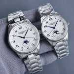 2824 movement, three codes matched. Longines' new Master Collection men's and women's watch, L2.909.4, simple and elegant, exuding composure. Functions are synchronized with the original; moving the dial to the second position allows for independent quick-set moon phase and calendar functions. The watch case measures 41 x 12 mm. Meticulously developed, leaving no detail overlooked, it meticulously recreates the unique elegance of the Master Collection case, ensuring a comfortable and snug fit. The leaf-shaped blued steel hands are identical in design and craftsmanship, with operation and adjustment methods matching the original. The barleycorn pattern on the dial is identical, making it visually indistinguishable. The watch features an Italian leather strap with a classic Longines butterfly-shaped stainless steel buckle. The 21mm size is identical to the original. The movement uses the original imported 2824-2 movement, ensuring accurate timekeeping. Three codes matched, a must-have! Tt factory products, guaranteed exclusive quality!