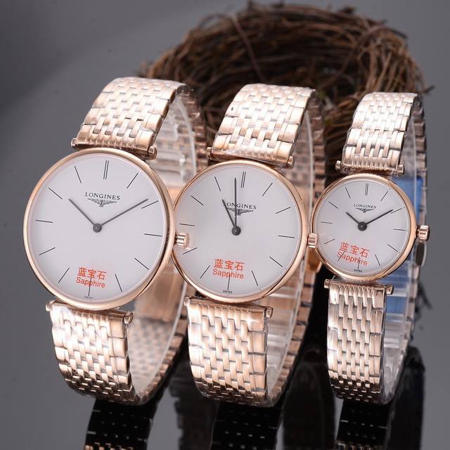 Brand: Longines Type: Original 2-hand Longines series Swiss movement pair watch Strap: Top-grade imported cowhide 316 stainless steel strap Movement: Top-grade imported Swiss quartz movement Crystal: Top-grade imported sapphire crystal Crystal Size: Large 39mm, Medium 34mm, Small 26mm