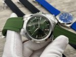 Case: Hammer-pressed 316S stainless steel. The 41mm case diameter boasts a smooth brushed and polished finish, exuding a premium feel. Water resistance is guaranteed, equipped with a sapphire crystal glass for superior clarity and scratch resistance without blue tingeing. The dial features luminous hands and markers, available in a full range of colors: elegant silver, classic black, versatile green, and deep blue. The steel bracelet with a folding clasp is adorned with the brand's signature craftsmanship, featuring a delicate and clear texture, and the leather strap color matches the genuine article. It is paired with a Meglumine exquisite buckle, ensuring superior quality, comfort, and durability.