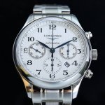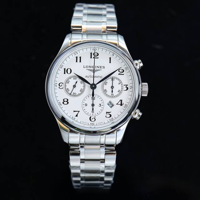 Gold Leather Strap Longines L2.759.4 Six-Hand Multifunctional Mechanical Watch. Features include hours, minutes, seconds, a small seconds hand at 9 o'clock with a 24-hour display, month and date, a clockwise rotating central seconds hand, and a 12-hour chronograph dial at 6 o'clock. The movement is a modified Shanghai automatic mechanical movement with an upgraded and improved original L688.2 rotor, boasting mature and stable technology and a 48-hour power reserve. The case is made of hammered 316S stainless steel, 42mm in size. It features CNC engraving for ultra-precision water resistance up to 100 meters. The dial and hands are blued steel, using original molds for the first time, with customized adjustments to ensure the embossed feel matches the genuine product. The watch is crafted with meticulous attention to detail and expert craftsmanship. The 316S steel strap is made from individual parts, polished, and hand-assembled, resulting in a flawless finish with no scratches or blemishes. The watch is exquisitely crafted, substantial, sturdy, and durable. The actual product is absolutely superb.