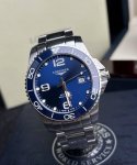 Longines Conquest Diving Series Automatic Mechanical Movement Date Display 300m Water Resistant Men's Watch Swiss Watch 41Mm Blue Dial Ceramic Stainless Steel Case Stainless Steel Strap