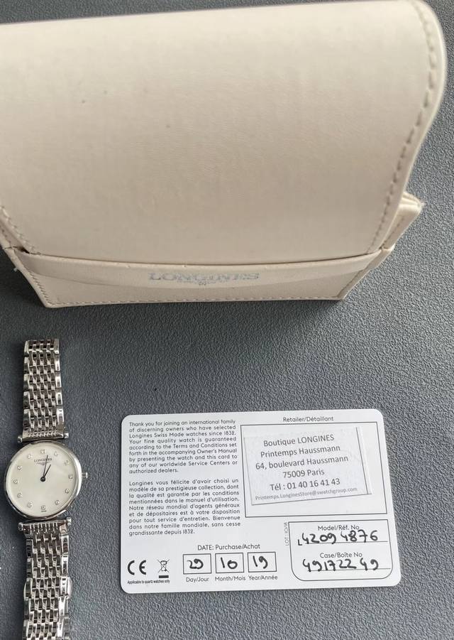 Longines La Grande Classique 24mm Mother-of-Pearl Dial with Diamond Markers, Complete Set with Portable Case. Longines La Grande Classique 209 Quartz Women's Watch, 24mm Diameter, Mother-of-Pearl Dial, Diamond Hour Markers.