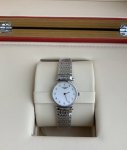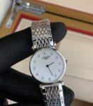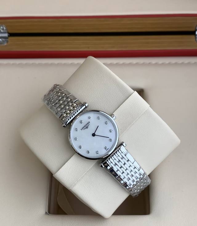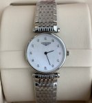 Longines La Grande Classique collection, quartz movement ladies' watch, 24mm case diameter, all stainless steel case, white mother-of-pearl dial, diamond hour markers, list price 16,640, complete set of accessories, model: L4.209.4.87.6# DDD