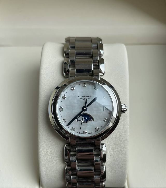 Longines La Grande Classique L8.115.4.87.6, 30.5mm case diameter, original Chinese retail price, complete set! Condition near 98% new! Original condition! Ladies' quartz watch, blued steel hands, internal diamond hour markers, moon phase function and date display at 6 o'clock, the same model worn by actress Zhao Liying, excellent original condition, 97% new. Official retail price 17290. #LuxuryWatchRecycling #LuxuryWatches #LuxuryBags #LuxuryJewelry #Longines #LonginesLa Grande Classique #ZhaoLiyingWatch