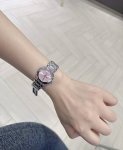 With its pink dial and elegant design, this watch is a fashionable choice for women to showcase their personal style.