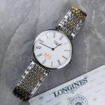 Longines La Grande Classique Ultra-Thin Quartz Watch with Stainless Steel Bracelet, available in men's and women's models. Official model number for men: L4.755.4.11.6 Official model number for women: L4.209.4.11.6 Classic three-hand Roman numeral dial, transparent sapphire crystal, blued steel hands, stainless steel case, stainless steel bracelet. Sizes: Women's: 24mm Men's: 36mm