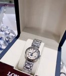 Longines Moon Phase Quartz Watch with Date Display, Moon Phase, Roman numerals, 34mm Swiss Style, Silver Dial, Stainless Steel Case, Stainless Steel Strap.