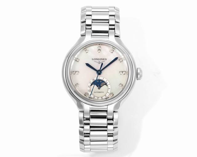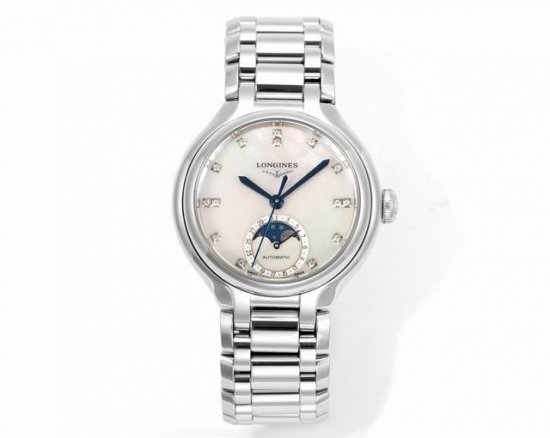 Longines New Heart Moon Starry Night Watch: Sparkling Stars, Eternal on Your Wrist. Make every wrist raise a highlight. Crystal-clear moissanite diamonds surround the dial, like stars falling into your eyes. The white and silver dial creates distinct layers, like a moonlight halo, gentle and serene, understated yet luxurious. The elegant 34mm size makes it dazzling for everyday wear or dates. Versatile design: seamlessly transitions from work to dates. Endorsed by Jennifer Lawrence, Zhao Liying, Zhang Yuxi, Deng Enxi, and Chen Lijun. 1:1 original mold, all parts are replicated and compatible with original parts. 2892 movement.