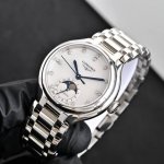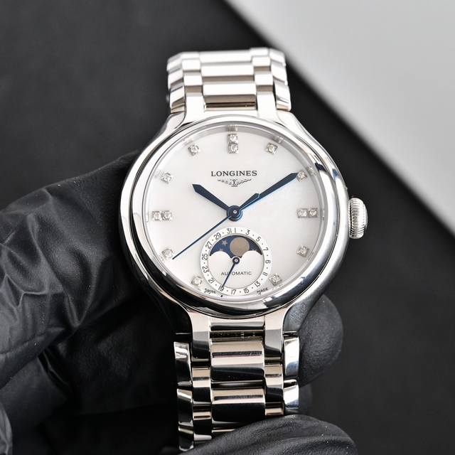 Longines' new Heart of the Moon watch, sparkling stars, eternal on your wrist. Make every wrist movement a highlight. Crystal-clear diamonds surround the dial, like stars falling into your eyes. The white and silver dial creates distinct layers, like a moonlight halo, gentle and serene, understated yet luxurious. The elegant 34mm size makes it dazzling for everyday wear or dates. Versatile design: seamlessly transitions to work or dates. Endorsed by Jennifer Lawrence, Zhao Liying, Zhang Yuxi, Deng Enxi, and Chen Lijun. 1:1 original mold, all parts are replicated and compatible with original parts.