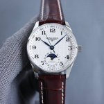 Longines New Master Collection Men's and Women's Couple Series L2.909.4: Simple and elegant, exuding composure. Functions are synchronized with the original. Moving the dial to the second position allows for independent quick-set moon phase and calendar functions. The watch case measures 41 x 12 mm. Meticulously developed, leaving no detail overlooked, it meticulously recreates the unique elegance of the Master Collection case, ensuring a comfortable and snug fit. The leaf-shaped blued steel hands are identical in design and craftsmanship, with operation and adjustment methods matching the original. The barleycorn pattern on the dial is identical, making it visually indistinguishable. The watch features an Italian leather strap with a classic Longines butterfly-shaped stainless steel buckle. The 21mm size is identical to the original. The movement uses the original imported 2824-2 movement, ensuring accurate timekeeping. All three codes match, making it an essential choice!