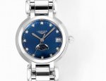 Made in Taiwan by Kb Factory. A masterpiece of Longines craftsmanship, elegant and sophisticated for the wrist. The Longines Moonphase watch arrives with elegance and a refined, unique appearance. It features a Swiss Ronda moonphase quartz movement with a true moon phase function, completing one cycle per month. Beneath its gentle exterior lies a "moon phase" movement. [Case] The watch measures 30.5mm x 9.3mm. The rounded curves of the case make it exquisite and refined. It exudes elegance with every gesture. Each case is a masterpiece of Kb's craftsmanship. [Movement] It uses the same Swiss quartz movement with a moon phase function as the original. The wave-shaped steel bracelet is comfortable and smooth to the touch, with a lustrous sheen. Each bracelet link is meticulously polished by Kb watchmakers to ensure flawless luster and shape, matching the original. [Hands] It uses blued steel hands, identical to the original. The surface features natural white mother-of-pearl markers set with moissanite for added sparkle. The Roman numerals are raised, identical to the original, providing a more three-dimensional look. The off-white surface, also identical to the original, has a highly textured grain, further enhancing its luxurious appearance! Welcome to share this exquisite recommendation: a high-fidelity, fully-fledged moon phase quartz watch for ladies. The best luxury gift recommendation