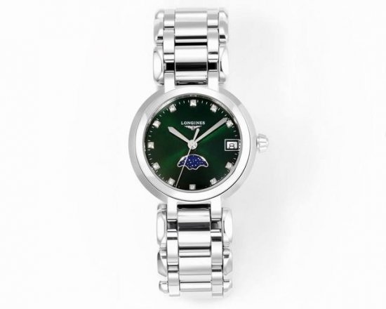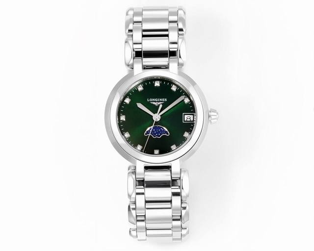 Made in Taiwan by Kb Factory. A masterpiece of Longines craftsmanship, elegant and sophisticated for the wrist. The Longines Moonphase watch arrives with elegance and a refined, unique appearance. It features a Swiss Ronda moonphase quartz movement with a true moon phase function, completing one cycle per month. Beneath its gentle exterior lies a "moon phase" movement. [Case] The watch measures 30.5mm x 9.3mm. The rounded curves of the case make it exquisite and refined. It exudes elegance with every gesture. Each case is a masterpiece of Kb's craftsmanship. [Movement] It uses the same Swiss quartz movement with a moon phase function as the original. The wave-shaped steel bracelet is comfortable and smooth to the touch, with a lustrous sheen. Each bracelet link is meticulously polished by Kb watchmakers to ensure perfect luster and shape, matching the original. [Hands] The hands are blued steel, just like the original. The surface features natural white mother-of-pearl markers set with moissanite for added sparkle. The Roman numerals are raised, identical to the original, providing a more three-dimensional look. The off-white surface, also identical to the original, has a highly textured grain, further enhancing its luxurious appearance! Welcome to share this exquisite recommendation: a high-fidelity, fully-fledged moon phase quartz watch for ladies. The best luxury gift recommendation