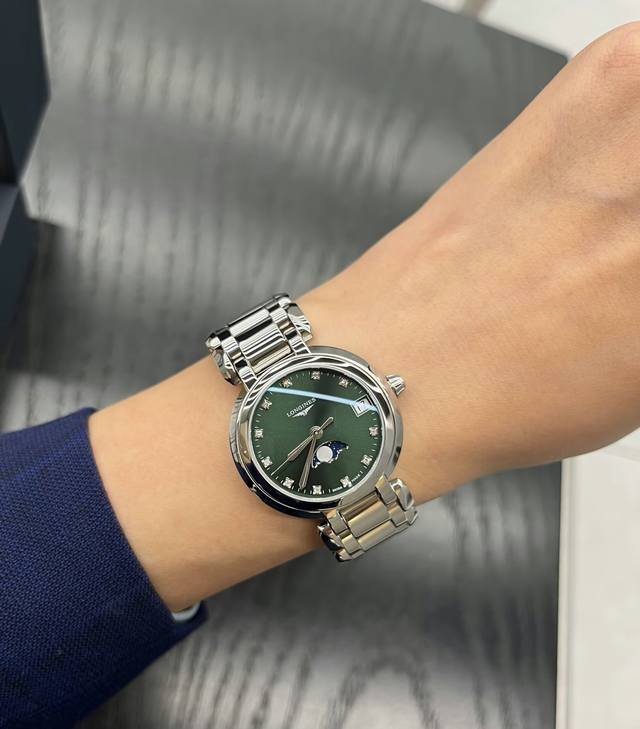 The Longines Heart Moon series shoes in Mountain Green are absolutely stunning! They look incredibly high-end in person. The 30.5mm crystal looks very stylish on the wrist. The sunburst dial paired with sparkling diamonds is clear and eye-catching. Green also symbolizes luck. This is a great value for money, perfect as a gift or for yourself.