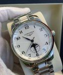 The Longines Master Collection four-hand moon phase watch brings out your unique style! DDD Although the Longines Master Collection is said to be ubiquitous, its quality makes it universally recognized. Almost everyone can bring out a different feel in it, but the one thing they all have in common is its undeniable beauty! DDD First, the dial is clean and simple, making the time clear and easy to read. Second, the barleycorn pattern on the dial adds richness and depth to the overall look. The blue hands prevent the dial from being monotonous, making every second of time ticking by feel dynamic and vivid! DDD