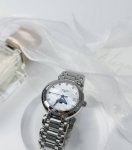 This Longines La Mer Moon Phase watch perfectly embodies the gentle and romantic essence of the Longines La Mer collection. Key features: DDD Mother-of-pearl dial: Natural mother-of-pearl shimmers with iridescent light, like wearing the Milky Way on your wrist! It refracts pink and purple iridescent halos from different angles, a unique and understated design. DDD 11 diamond hour markers: Wesselton Vs-Si grade genuine diamonds, diamonds replace numbers, instantly sparkling and making you the center of attention during commutes or meetings. DDD Moon phase function: Engraving romance into every second. DDD Moon phase display at 6 o'clock: Witnessing the waxing and waning of the moon with you through long nights, dates, and anniversaries. Your boyfriend says, "This dial holds our time together." DDD A stunning feeling of "person and watch as one." DDD